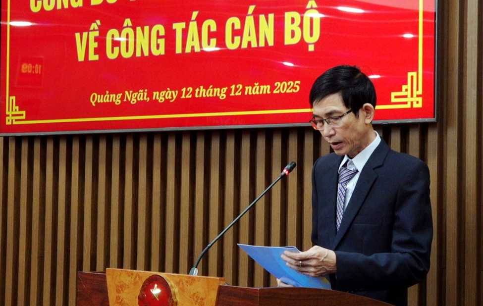 Thừa ủy quyền của Chủ tịch UBND tỉnh, Giám đốc Sở Nội vụ Tạ Công Dũng công bố Quyết định số 1676/QĐ-UBND về việc điều động ông Nguyễn Văn Điệu, Tỉnh ủy viên, Chánh Thanh tra tỉnh đến nhận công tác tại Sở Ngoại vụ và bổ nhiệm giữ chức vụ Giám đốc Sở Ngoại vụ trong thời hạn 5 năm, kể từ ngày 15/12/2025 đến ngày 15/12/2030.
